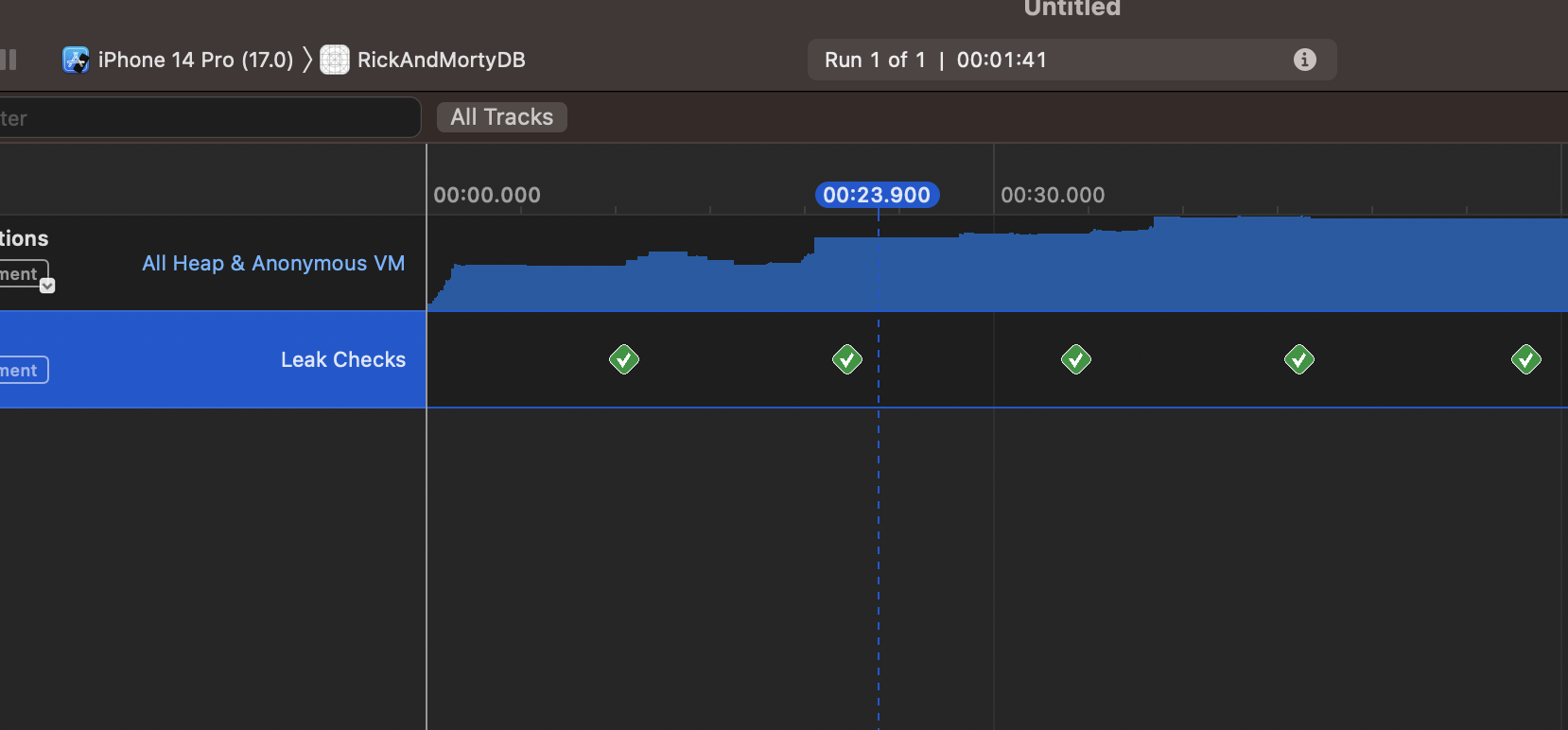 Coorinator 패턴을 적용 후, Memory Leak이 있는지 없는지 체크해 보았다.